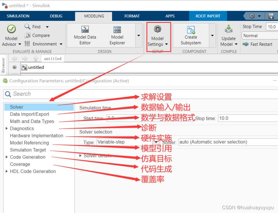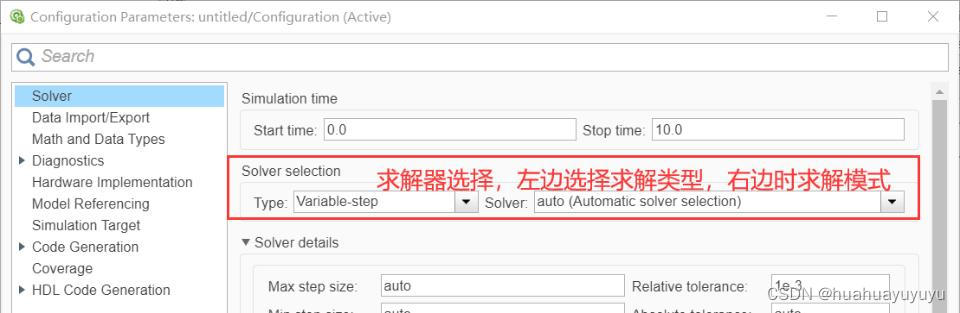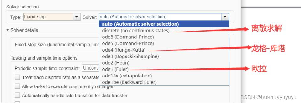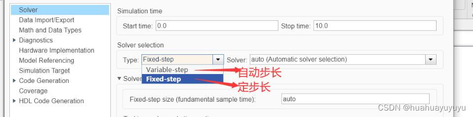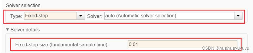 做软件(单片机里面)开发就选Type:Fixed-stepSlover:discrete,(定步长;离散求解),因为要放在MCU里的定时中断处,所以需要定步长离散数据