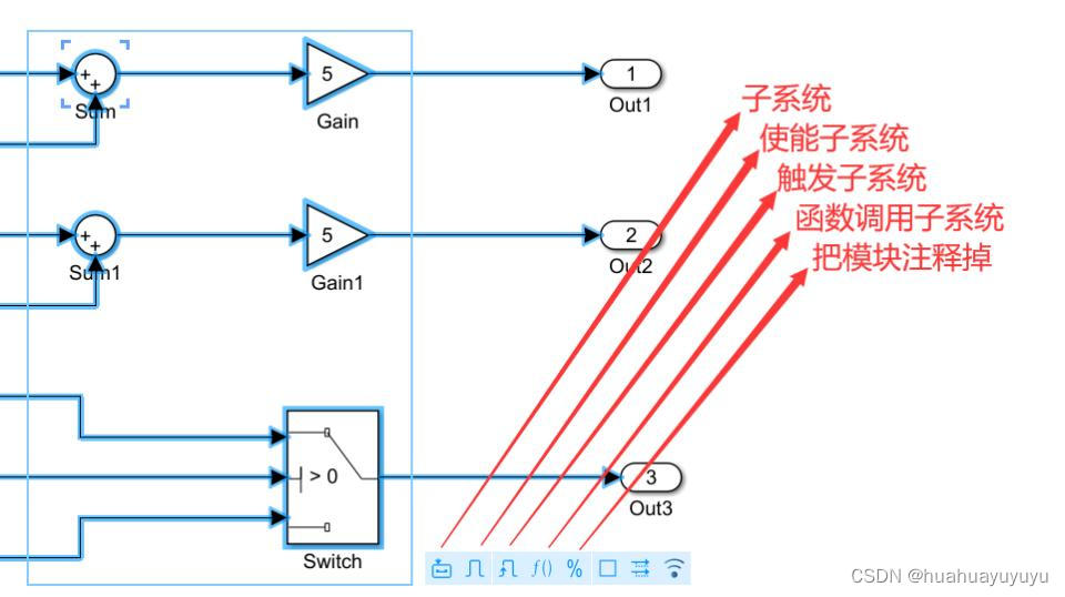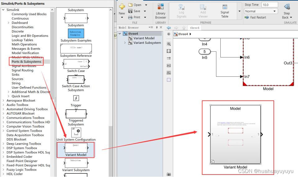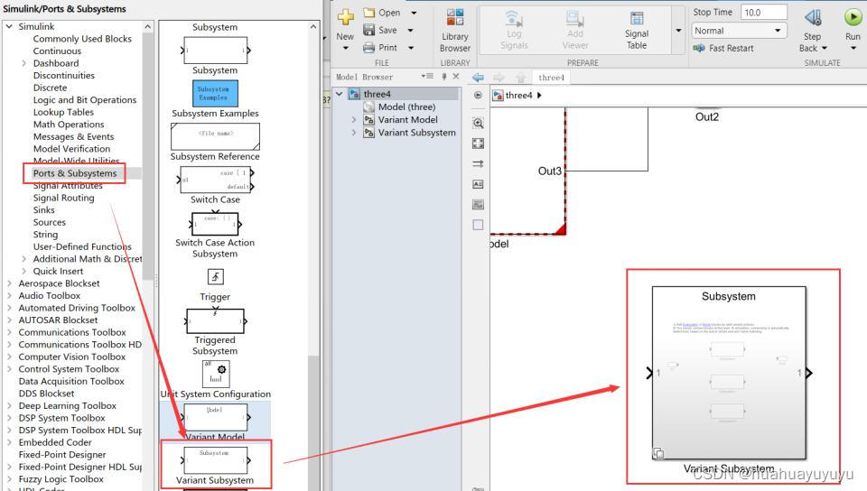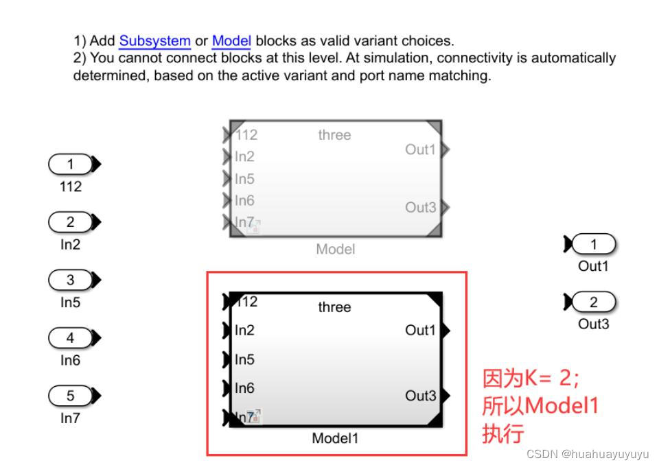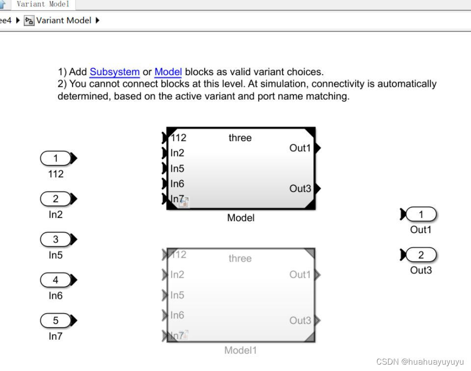 Variant Subsystem 功能和上一个Variant Mode差不多,Variant Mode是引用模型文件,VariantSubsystem是自建子文件,要自己画,其他功能一样。
