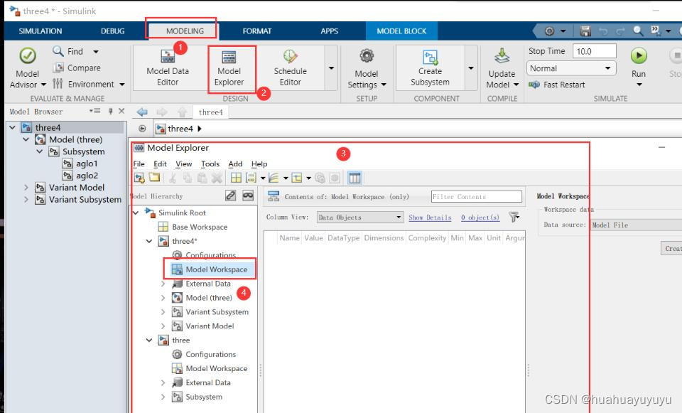 matlabsimulink 提供了一个干净的工作区,可以将每个系统的工作数据分开存储,如下: