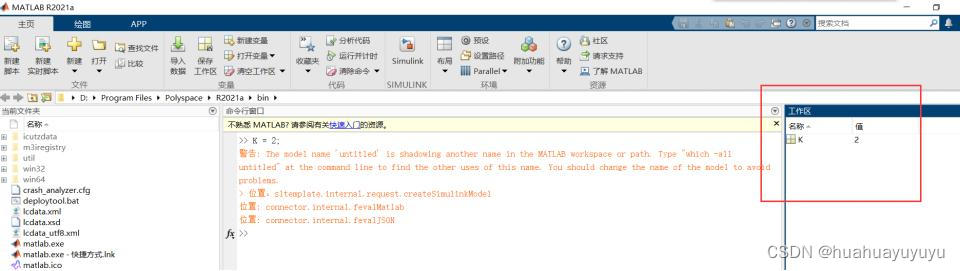 但是它有很多不足,这个工作区会将matlab所有的数据都存在里面,很杂很乱。