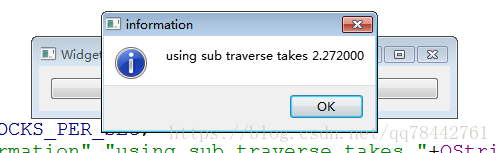 QMessageBox::information(this,"information","using sub traverse takes "+QString::number(totalTime,'f',6));