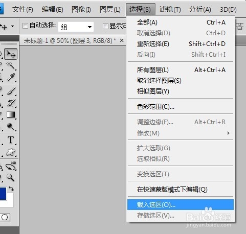 5、怎么选择图层的选取?点击菜单栏中的选择—载入选区—确认提示—选取完成。