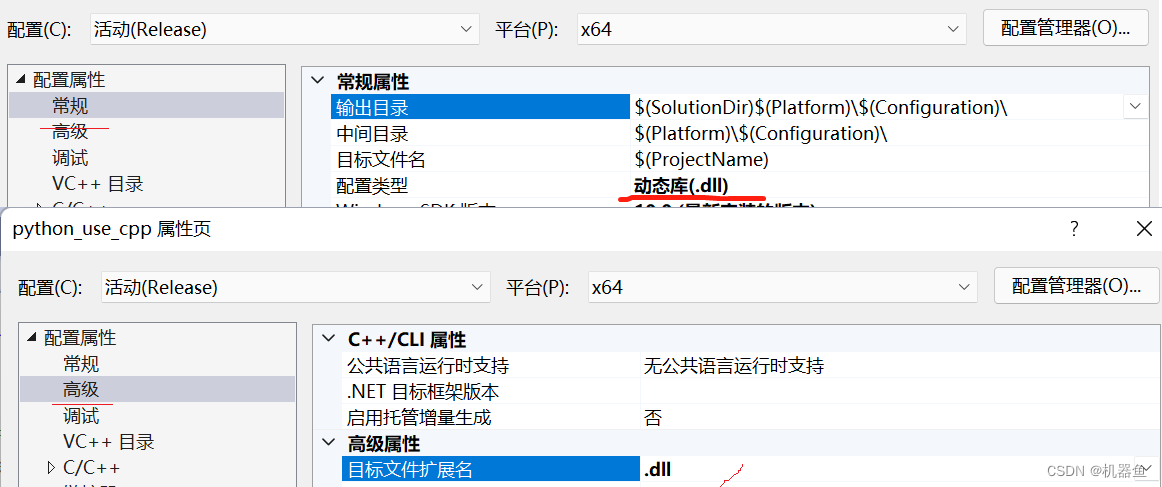 程序编写完毕之后,在配置一下属性,方便导出动态库,如下。然后生成解决方案
