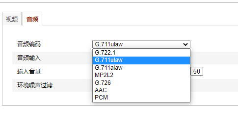 2、摄像头类,音频编码包含G711A,G711U,AAC等常用编码