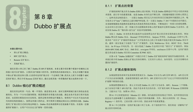 以上就是靓丽马里奥最近收集整理的关于Java三大框架面试题第1章:Dubbo的简史、后续的规划和整体架构大图第2章:Dubbo的环境配置和基于Dubbo开发第一款应用程序第3章:Dubbo内置的常用注册中心的实现原理第4章:Dubbo扩展点加载的原理和实现第5章:Dubbo 的配置解析、服务暴露、服务消费和优雅停机的机制第6章:Dubbo的RPC 协议细节、编解码和服务调用的实现原理第7章:Dubbo的集群容错、路由和负载均衡机制第8章:Dubbo扩展点的相关知识第9章:Dubbo高级特性的实现和原理第10章:Dubbo过滤器的实的全部内容,更多相关Java三大框架面试题第1章:Dubbo的简史、后续的规划和整体架构大图第2章:Dubbo的环境配置和基于Dubbo开发第一款应用程序第3章:Dubbo内置的常用注册中心的实现原理第4章:Dubbo扩展点加载的原理和实现第5章:Dubbo内容请搜索靠谱客的其他文章。