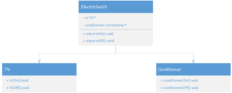 定义一个电器开关,打开电器开关时,电视机和空调打开;关闭电器开关时,电视机和空调打开关闭;