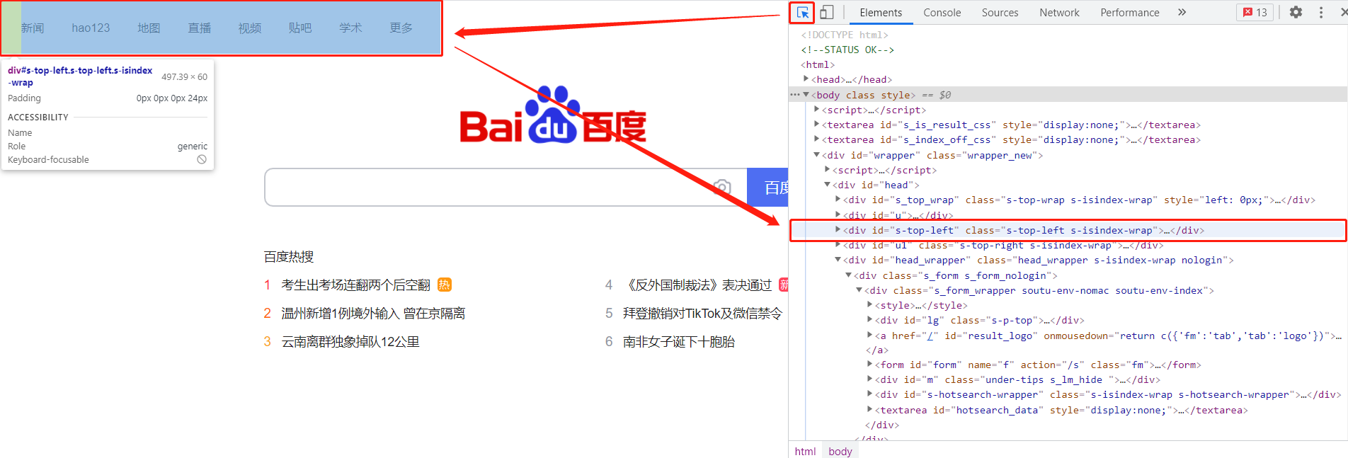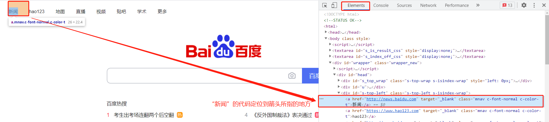 总结:利用选择按钮和Elements元素按钮我们就可以获取我们想获取内容的在源码中的文本格式以及所在位置了。