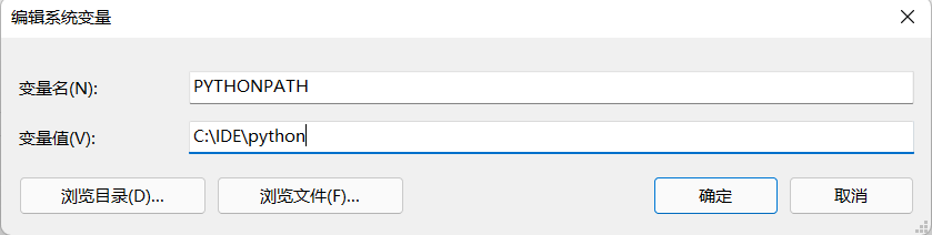 2.1 新建PYTHONPATH系统变量,变量值为python路径
