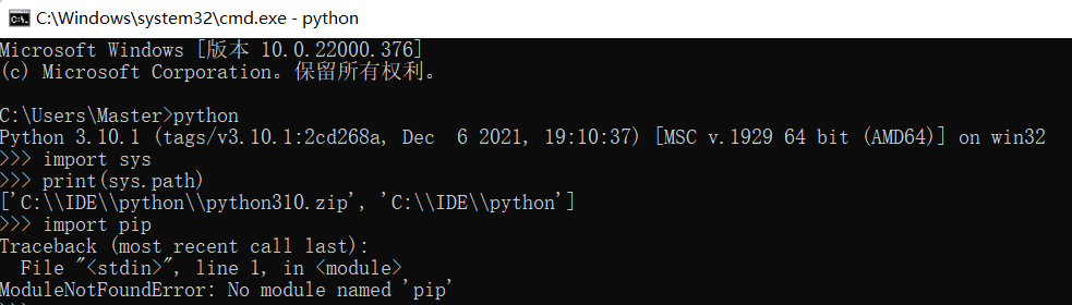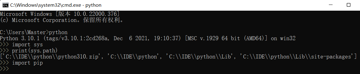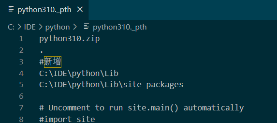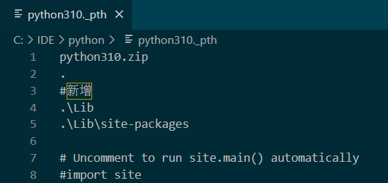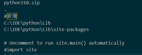 以上就是落后鲜花最近收集整理的关于使用python package(可嵌入的包,压缩版)搭建python环境,并安装使用pip。1. 下载并解压python embeddable package到目标路径。2. 在python根目录下新建Scripts文件夹3. 下载并移动至python根目录,cd命令打开python目录,输入python get-pip.py 再回车 4. 修改python根目录下的 python310._pth文件5.修改原因的全部内容,更多相关使用python内容请搜索靠谱客的其他文章。