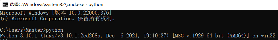 输入python再回车,出现以下提示说明python环境变量设置成功