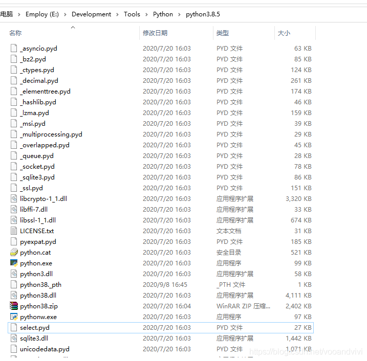 1)解压下载好的python-3.8.5-embed-amd64.zip文件到你想要放的目录
