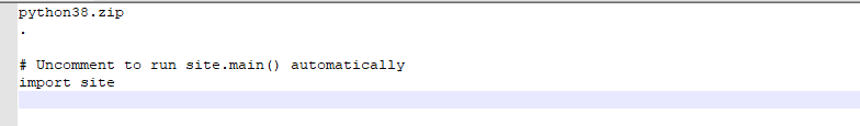 执行完成python根目录会自动创建Lib和Scripts文件夹 , 在python根目录找到python38._pth文件,使用记事本打开,去掉 “import site”前面的 # 号