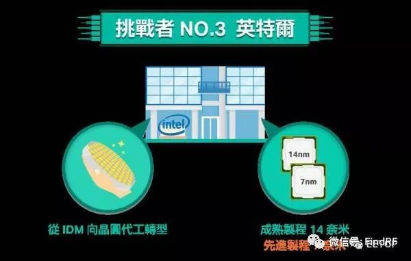 2016 年 10 月, 晶圆代工厂台积电董事长张忠谋谈及 Intel 跨足晶圆代工领域,谈及此举是把脚伸到池裡试水温,并表示:「相信英特尔会发现,水是很冰冷的。」全球晶圆代工在 2015 年的产值高达488.91 亿美元,更是台湾科技业与金融业维生的命脉。