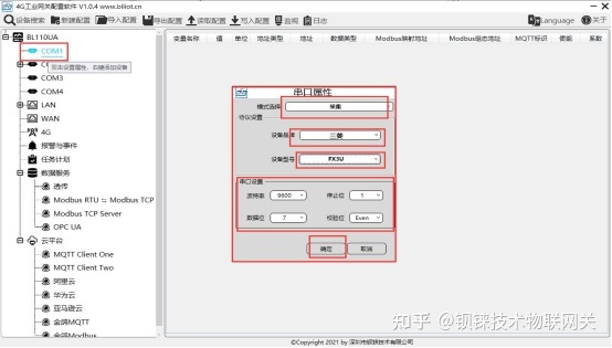 工业智能网关BL110 COM口采集三菱PLC FX3U的配置