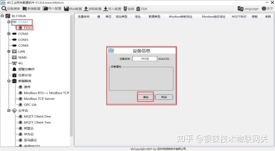 注:点击“写入配置”网关设备将自动重启,重启后添加COM口的FX3U设备才添加成功。