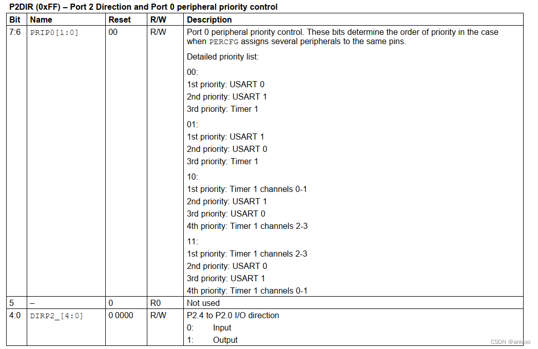P2DIR &= ~0xC0;// 1100 0000 将外设设置为串口0优先