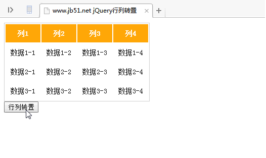 本文实例讲述了jQuery+CSS实现的table表格行列转置功能。分享给大家供大家参考,具体如下: