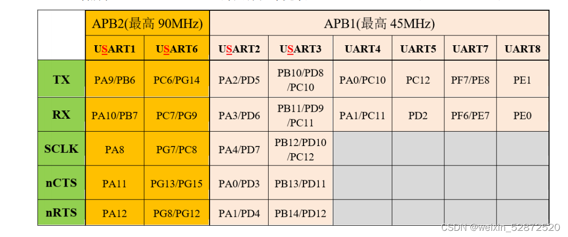 - 区别:USART指单片机的一个IO端口模块,可以根据需要配置成同步模式(SPI,IIC),也可以配置成异步模式(UART),可以理解为USART为SPI、IIC对等的“协议”。UART则不是一个协议,为一个实体。