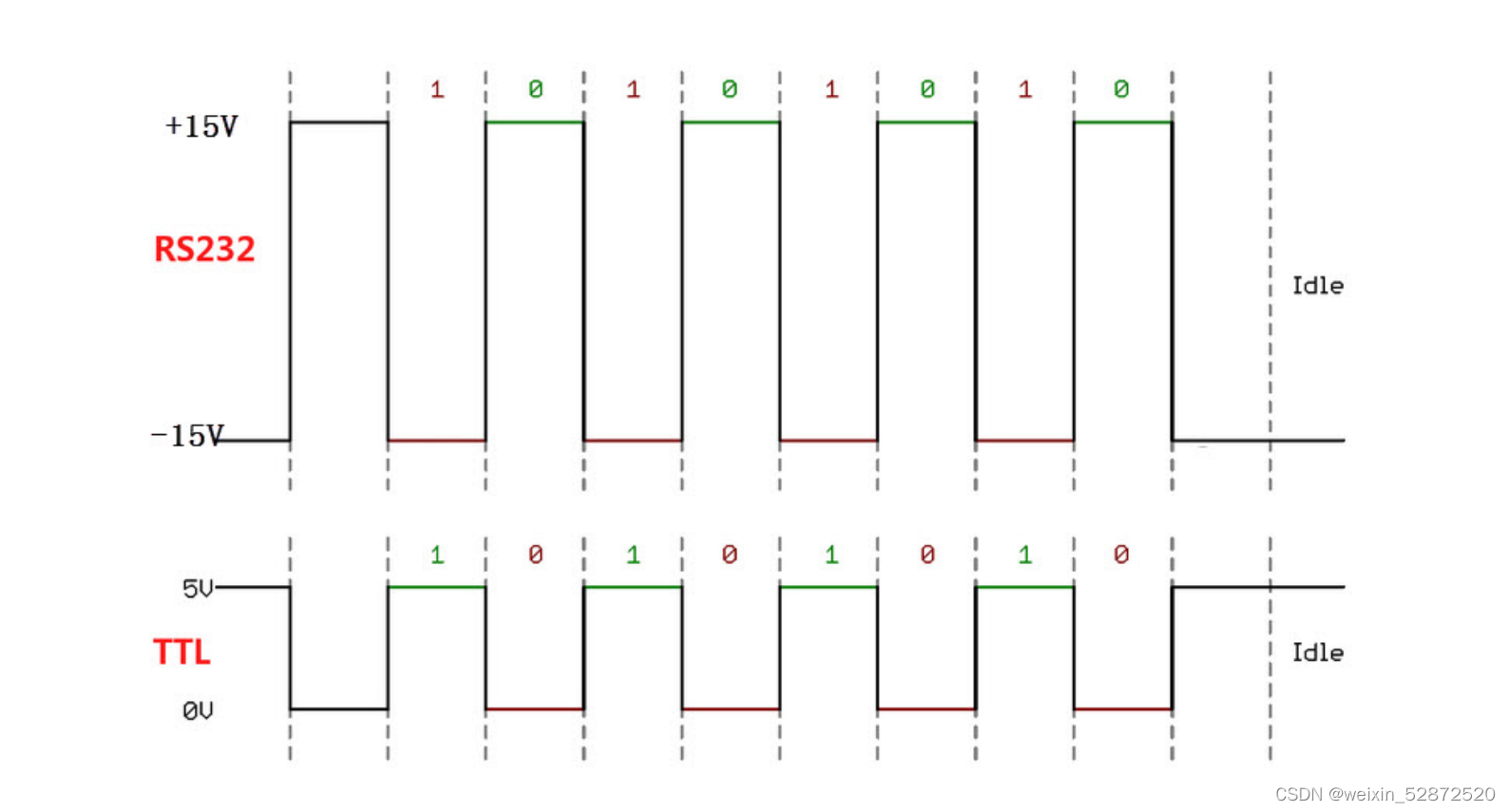 232电平:电脑串口的电平,负逻辑。(-3 - 15v)