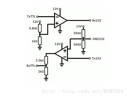 也可以使用比较电路来实现TTL转RS-232的功能。