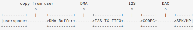 ALSA CORE:alsa 核心层,向上提供逻辑设备(PCM/CTL/MIDI/TIMER/…)系统调用,向下驱动硬件设备(Machine/I2S/DMA/CODEC)