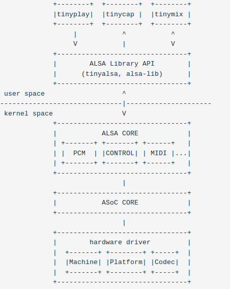 ALSA Library API:alsa 用户库接口,常见有 tinyalsa、alsa-lib