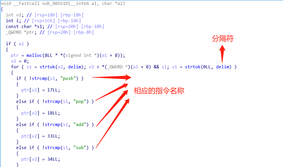 指令间是通过分隔符执行分隔的,分隔符有 nrt存进了名为delim的变量,strtok是根据分隔符将字符串分割出来,就是为了区分我们输入的指令。指令是采用字符串进行输入的。