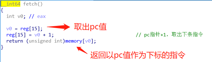 fetch函数较为简单,即取出pc值,以pc值作为下标返回指定的指令
