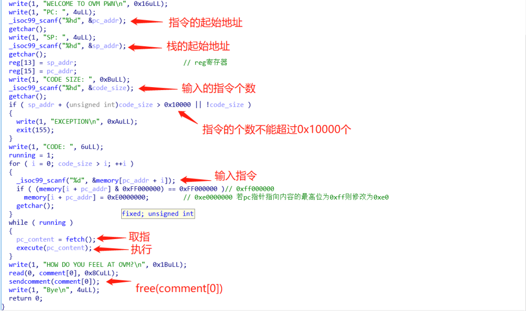 其中漏洞点在于两条指令,由于数组的下标没有进行限制,则会产生数组越界的情况。则造成了任意地址写和任意地址读的情况。
