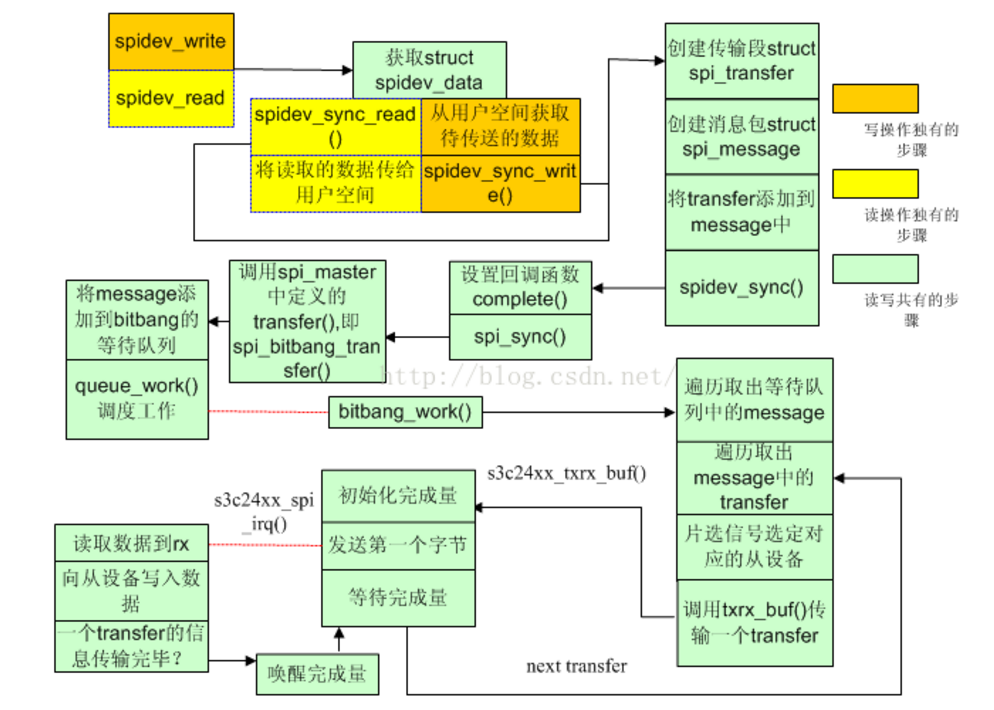 spi_transfer → spi_massage → spi_sync