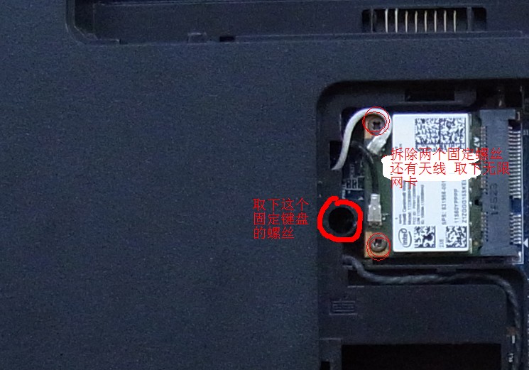 首先拆除无限网卡边上的键盘固定螺丝