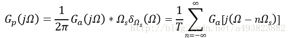 对连续信号ga(t)进行冲击采样,采样频率为Ωs(采样周期为T),即Ωs≥2Ωm,满足Nyquist采样定理。根据模拟信号时域采样一文可以知道,若设采样信号为gp(t),其频域响应为Gp(jΩ),那么可得: