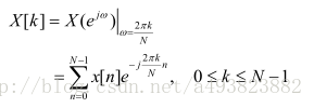 由离散傅里叶变换一文可知,频域离散化(DFT)即将CTFT在区间0≤ω≤2π等间隔采样N个点得到的,即间隔为2π/N,即DFT为: