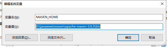 接下来添加环境变量 新增一个MAVEN_HOME 把maven 绝对路径填写进去,到bin目录即可%MAVEN_HOME%bin