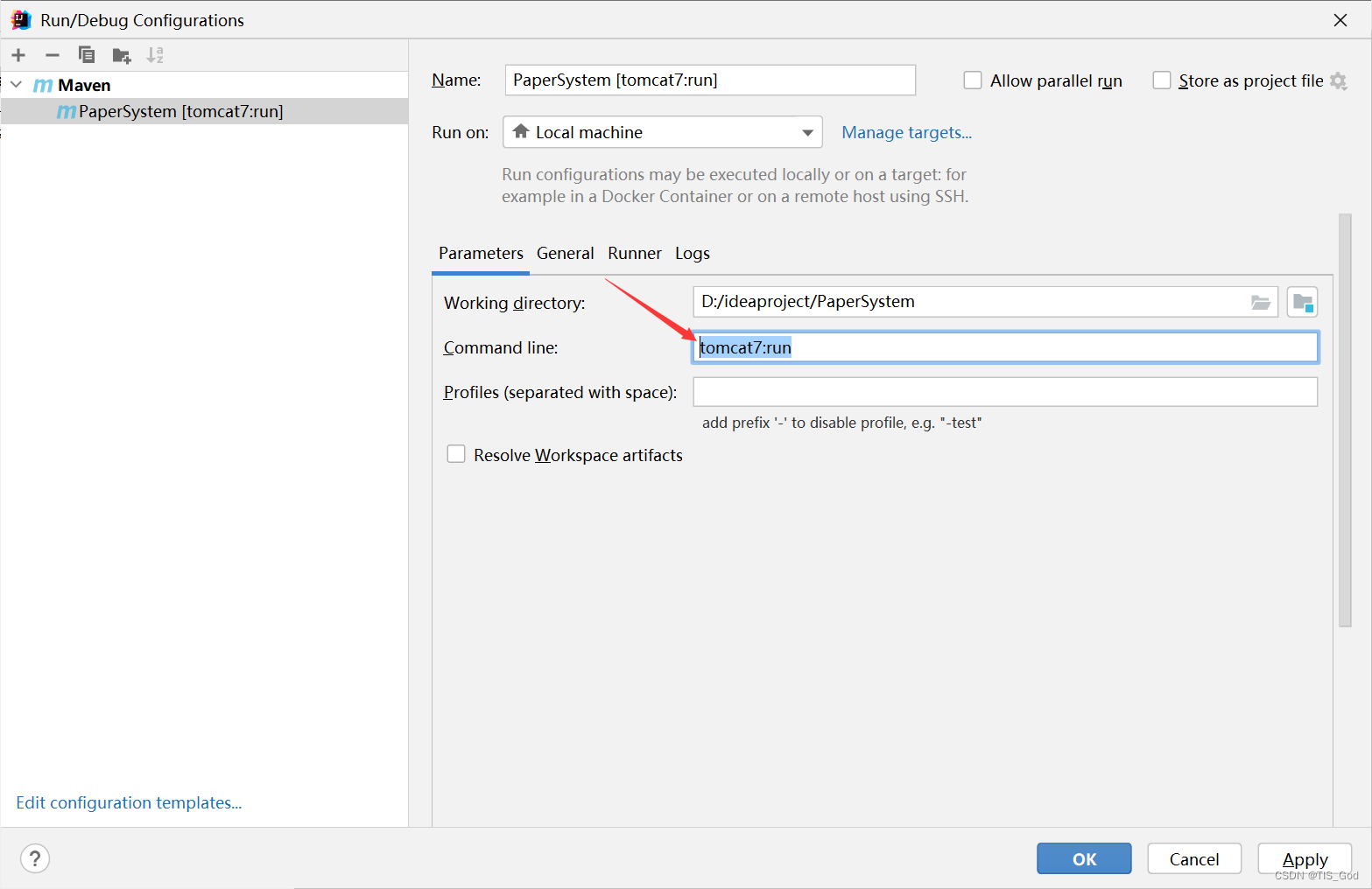 在 Command line 中加入 tomcat7:run