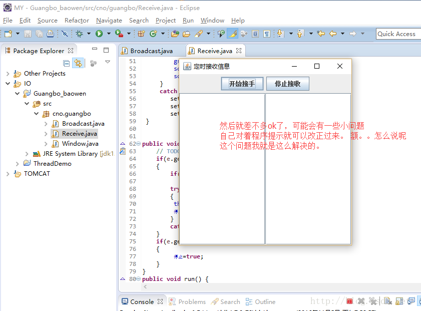 本人电脑环境配置的是JDK1.7,朋友的是JDK1.8 ,我把她编的Java文件导入到我电脑里的Eclipse(LUNA版本)的时候,项目出现一个红色叹号,当然运行是肯定出错了。SO我就开始了解决之旅,经过一顿折腾终于折腾好了。下面截下图,纪念一下我的排错之旅。