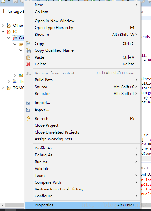第三步:点击Finish后系统会自动导入了,接下来选中项目再右键,选择properties.