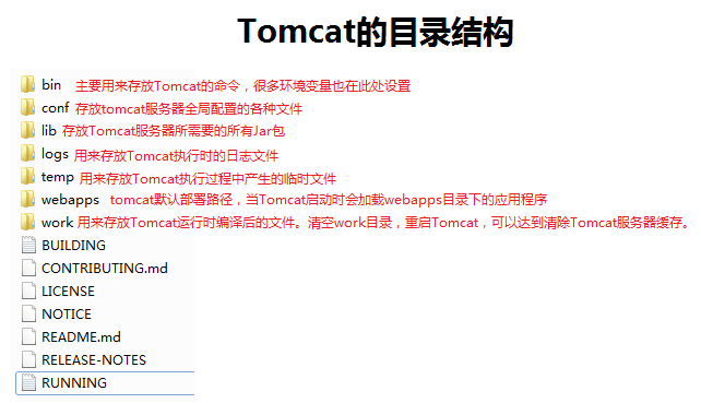 把下载完的压缩包,解压到当前目录下,Tomcat的目录结构如下:
