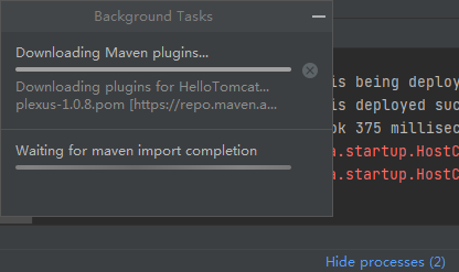 第一次创建需要等待下载maven工具,Idea自动下载,下载完成后,重新启动一下