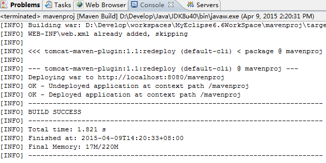 以上就是殷勤唇彩最近收集整理的关于Maven在MyEclipse中实现编译、打包、热部署的全部内容,更多相关Maven在MyEclipse中实现编译、打包、热部署内容请搜索靠谱客的其他文章。