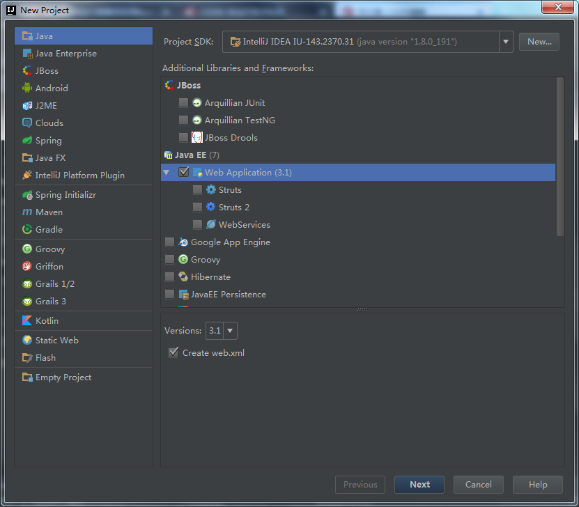 建立新工程:File -> new -> project -> java 勾选Java EE