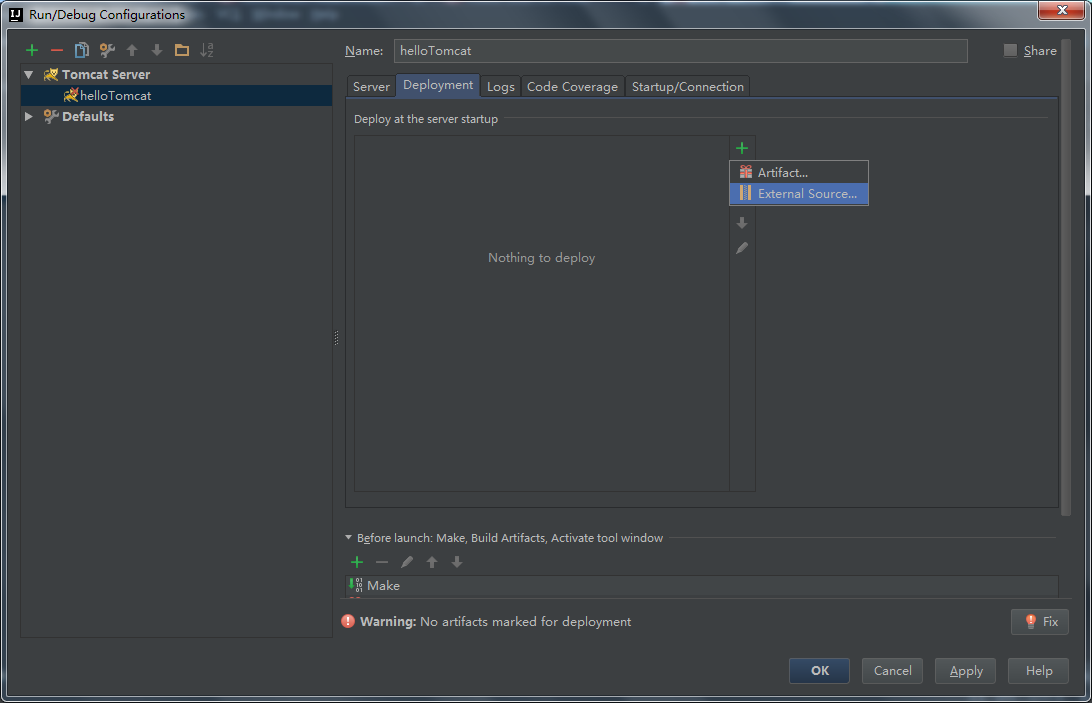 然后点到Deployment,点击右边绿色的加号,选择Artifact
