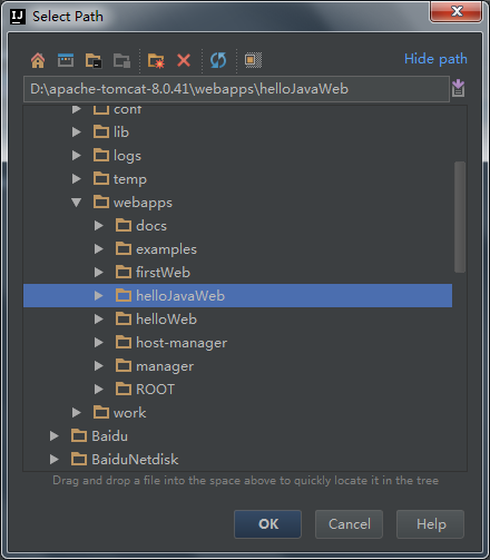 当然如果就这样的话,运行会出现404,表示在webapps目录下找不到相关文件,解决方法是修改Output directory里的路径到tomcat的webapps下。