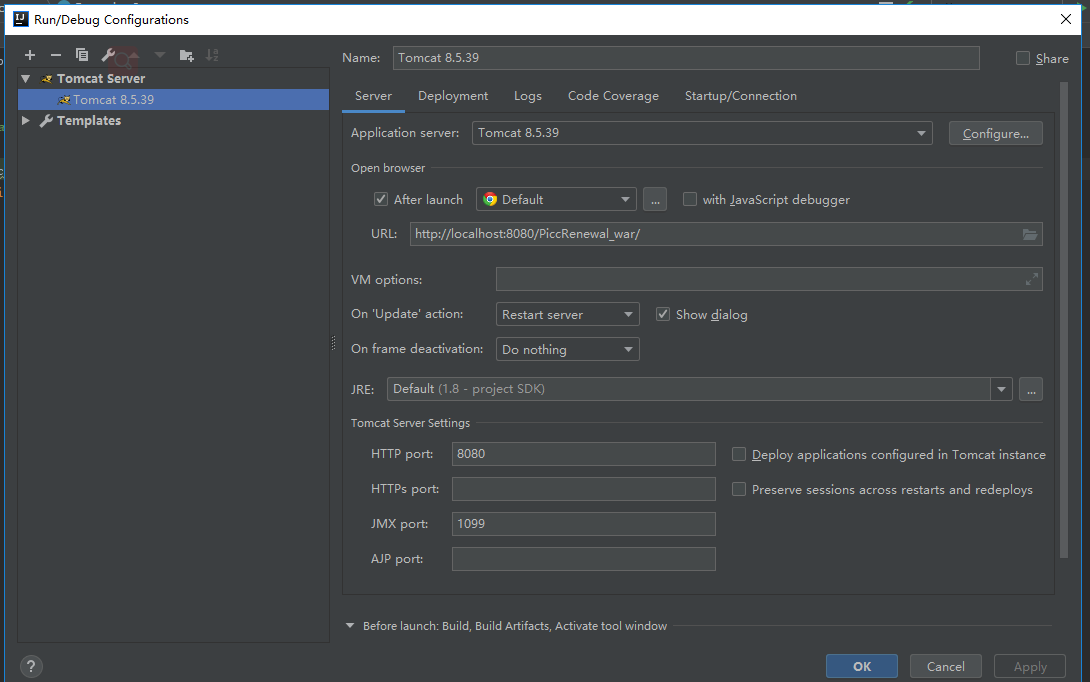 idea加载tomcat并且运行