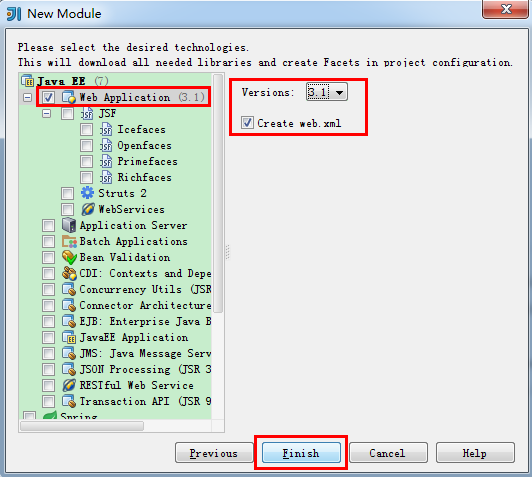 3.勾选 Web Application,勾选 Create web.xml选项,点击Finish