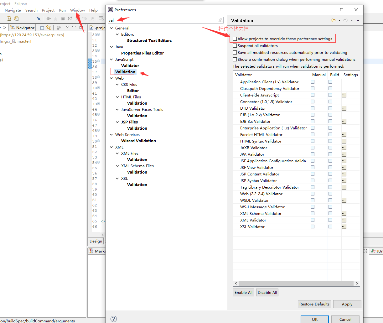 去除eclipse的JS验证: