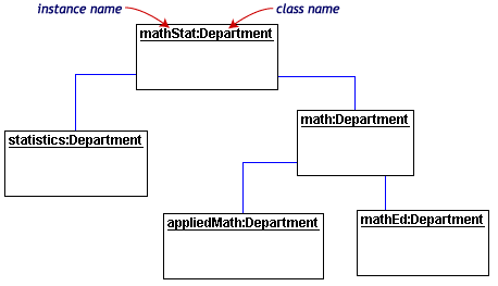 每个类图的矩形对应了一个单独的实例。实例名称中所强调的UML图表。类或实例的名称可能是省略对象图表只要图的意义仍然是明确的。