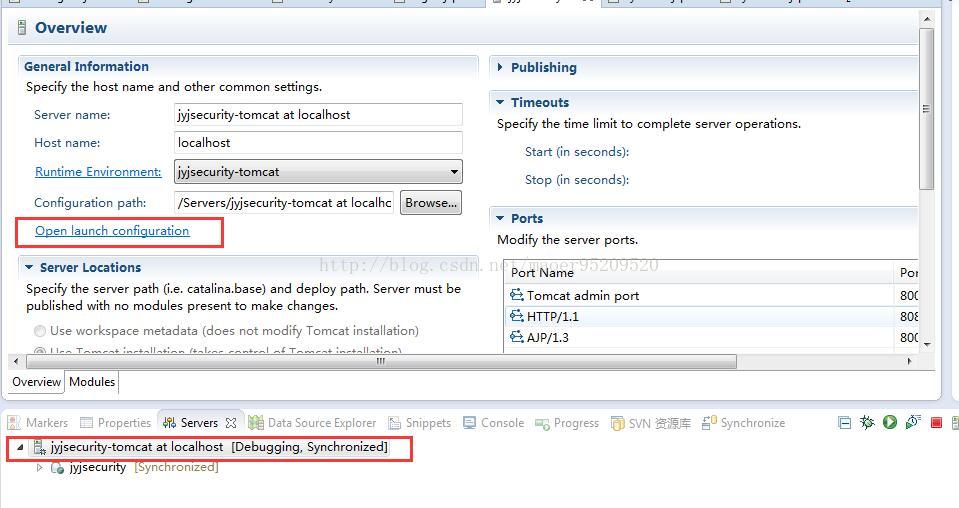 正确做法:在server界面中,如果已经添加了tomcat,则双击tomcat进入设置页面