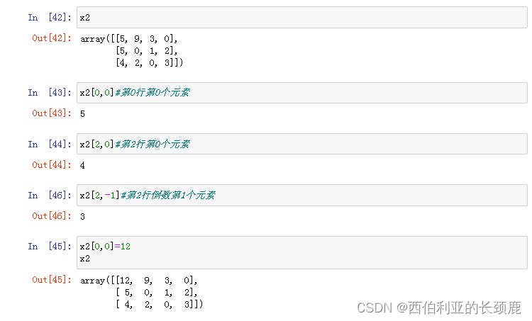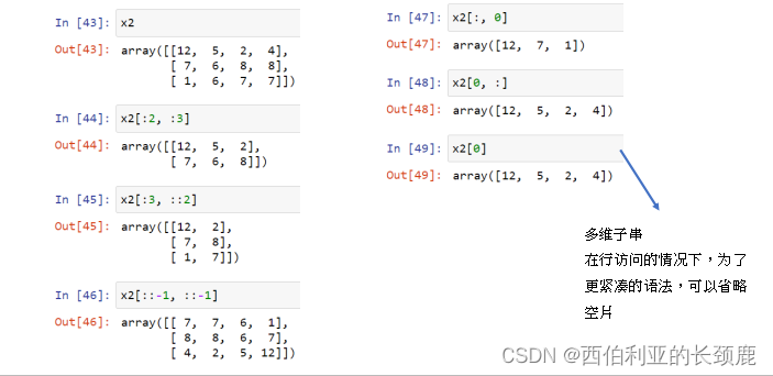 多维数组切片方式与一维类似,先切行,后切行里面的元素
