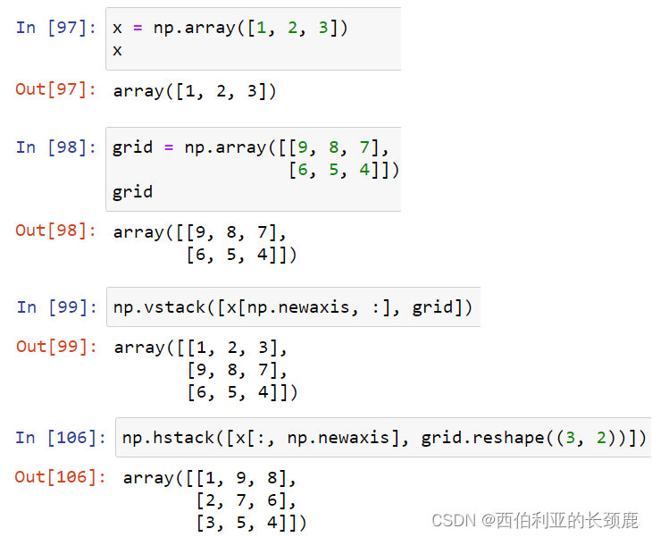 vstack()是纵向排列